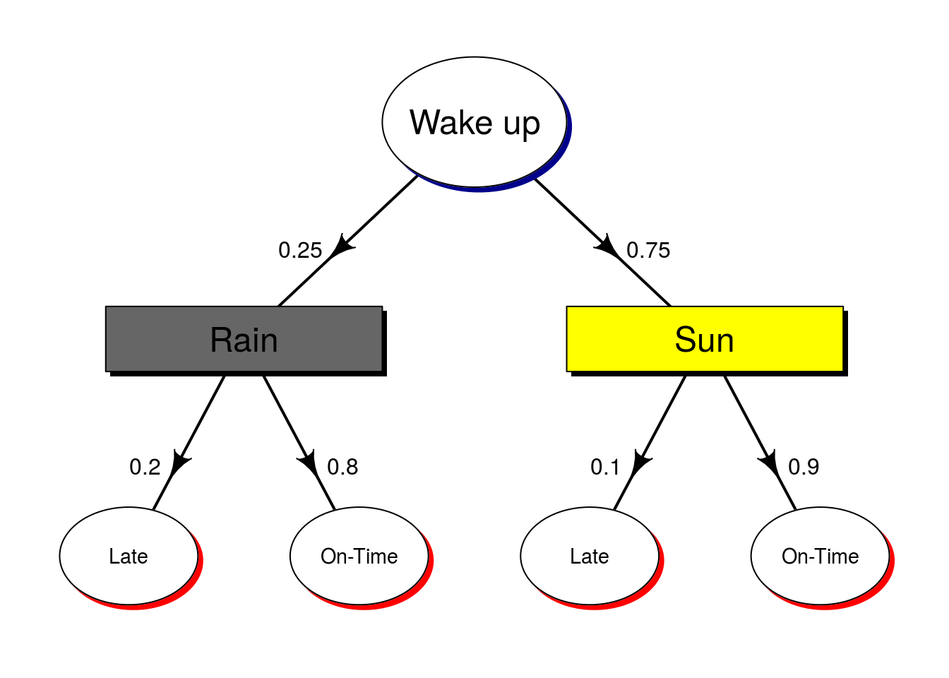 p(Late) = p(Rain) * p(Late | Rain) + p(Late) * p(Late | Sun)